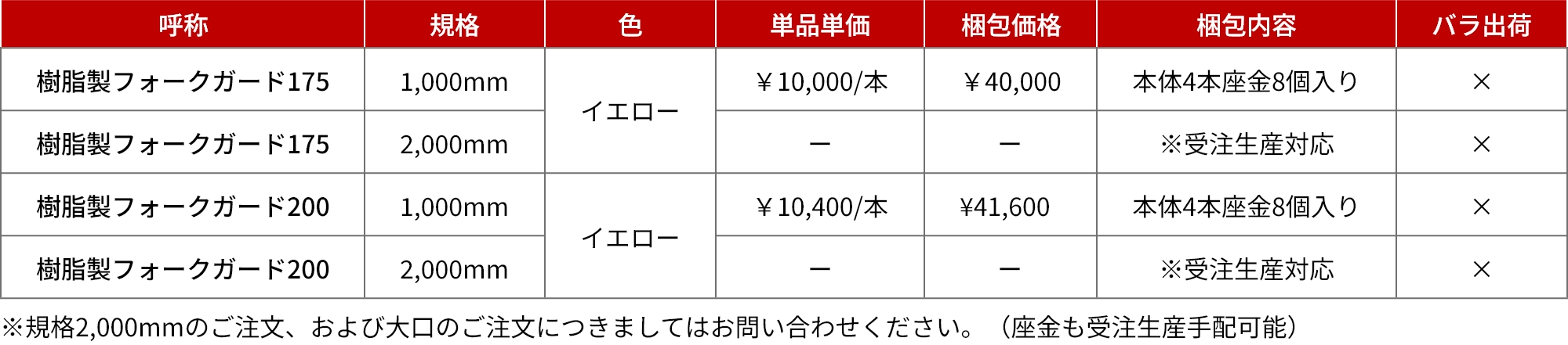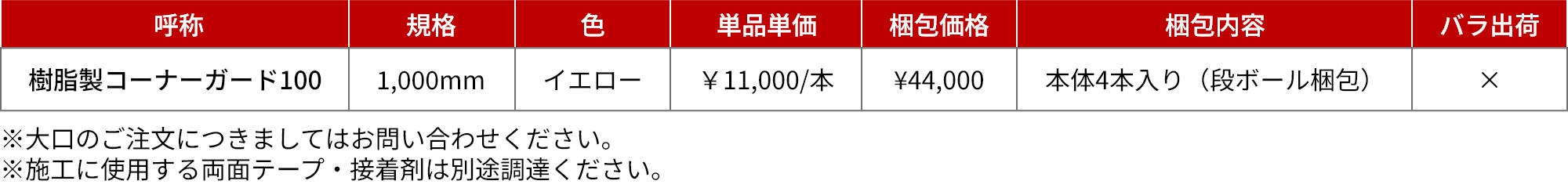 - ・本製品は、フォークリフト操作者が倉庫内に設置された本製品を視認することで、壁、柱などの位置の確認、目測をする際の目印としての使用がその用途であり、実際にフォークリフトが壁、柱に衝突した場合の緩衝材としての強度を有していません。